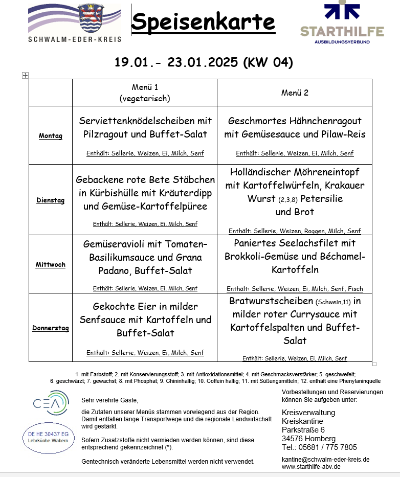 Speisekarte Kantine